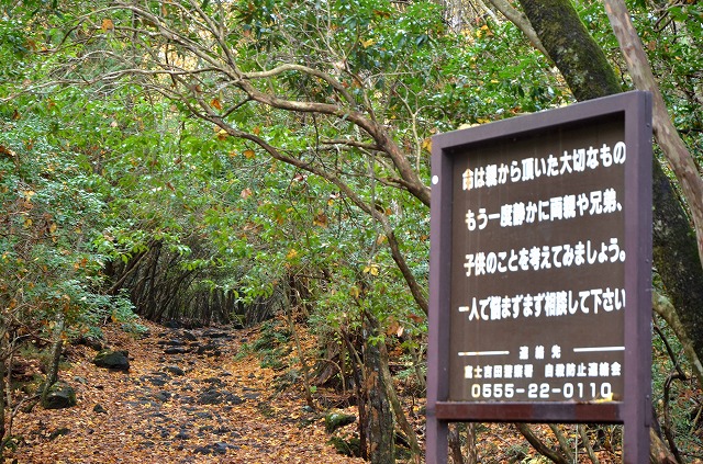 樹海の道は薄暗く、あまり奥に行ってないのに、家内は怖がっていた